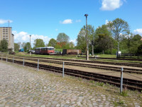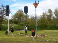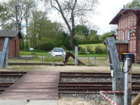 Eine vor vielen Jahren überlassene Halbschranke wird derzeit ihrer eigentlichen Bestimmung wieder zugeführt. Sie wird am Gleisübergang am Empfangsgebäude zu Demonstrationszwecken voll funktionstüchtig bis zum Herbst aufgebaut sein. Die Kabel sind bereits größtenteils verlegt. Die Steuerung soll im Vorbau des Empfangsgebäudes ihren Platz finden. Die Schrankenbäume werden gerade noch überholt bzw. repariert. Fazit: Wieder ein Baustein zur Vervollkommnung des Bahnhofareals.